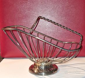 Elegante portabottiglia da tavola realizzata in fili di metallo intrecciati, anni '70.