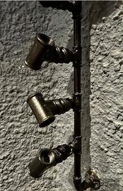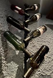 Portabottiglie fatto a mano è realizzato con tubi idraulici disposti su entrambi i lati con fissaggio a parete per il supporto di bottiglie di vino.