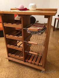 Vendo cantinetta per vini con ceste in acciaio porta oggetti ,ideale per cucina o taverna , in legno massiccio , misure altezza 90 lunghezza 75 spessore 38 non spedisco solo ritiro a mano