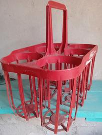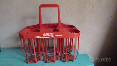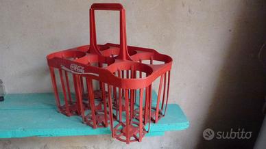 Cestello portabottiglie vintage di plastica Coca Cola, con una stecca verticale interna staccata guasi impercettibile dall'esterno, prezzo euro 14 più spese di spedizione.