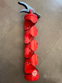 Vendo portabottiglie da parete a forma di estintore. È molto solido, realizzato in metallo con inserti in gomma antiscivolo per le bottiglie.