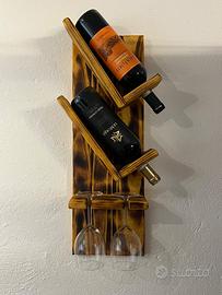 Un tocco di eleganza rustica per la tua cucina o la tua taverna! Questo portabottiglie da parete è realizzato interamente a mano in legno d'abete e rifinito con una brunatura artigianale che ne esalta le venature naturali.