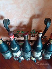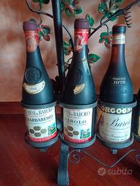Portabottiglie in ferro battuto con ruote posteriori sempre in ferro completo di dieci bottiglie d' annata e di pregio di cui 7 Barolo (Fontanafredda-Borgogno-Scanavino-Bertano-Marchesi di Barolo) e tre Barbaresco (Fontanafredda-Borgogno-Marchesi di Barolo). La struttura si presenta in ottime condizioni, le bottiglie integre, sigillate e complete di etichettatura, annate comprese tra il 1957 e il 1980. Oggetto perfetto per fare o farsi un regalo esclusivo e di sicura rivalutazione futura o per collezionisti del genere. Preferibile scambio a mano considerato il valore e la delicatezza dell' insieme, possibilità di consegna a domicilio previo accordo sul costo di trasporto o spedizione tramite Subito ma con riserva sull' eventualità di danni da trasporto. Ulteriori immagini dettagliate disponibili.