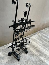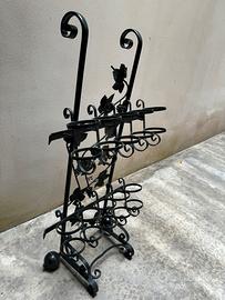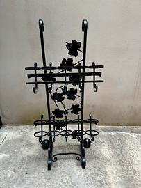 Elegante portabottiglie per 10 bottiglie, lavorazione artigianale, in ferro battutto, con ruote. Pezzo unico. Solo ritiro in loco (Padova sud).