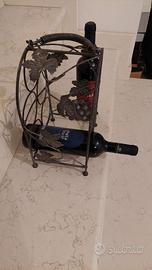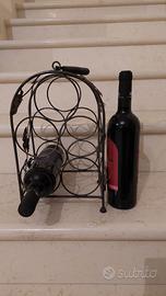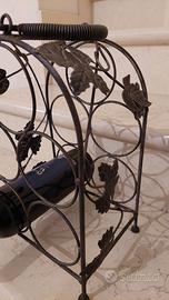 Portabottiglie in ferro battuto con foglie di vite. Contiene 5 bottiglie. Misure 20 x 16 cm, h 34 cm. Preferito ritiro a cura dell'acquirente.