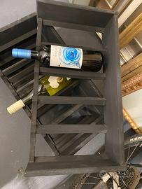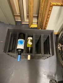 Vendo portabottiglie in legno robusto e stabile, ideale per vino o liquori, capienza circa 20–25 bottiglie.
