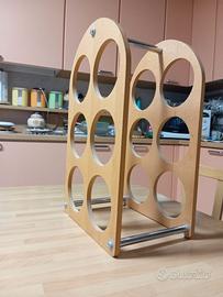 Portabottiglie per sei bottiglie. Portabottiglie in legno contemporaneo per bar, tavoli, dispensa e ripiani della cucina e per gli amanti del vino. Senza confezione originale. Fornito smontato.