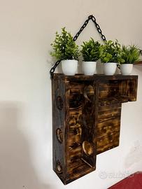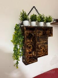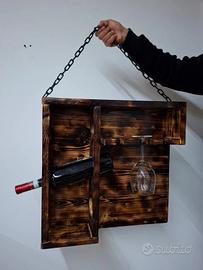 Portabottiglie e bicchieri home Made vintage unico nel suo genere. Elegante, classico, perfetto per esporre vini pregiati. Può contenere 3 bottiglie e 2 bicchieri. Consigliato per essere esposto nella propria casa o come allestimento in locali come bar o pub.