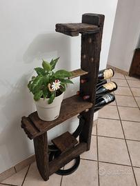 Portabottiglie realizzato con tavole di vecchie botti. Base in ferro.