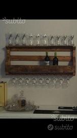Portabottiglie porta bicchieri in legno creato con materiale di recupero pallet bancale pancale