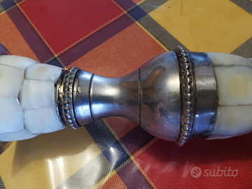 Porta candela in argento e madreperla. In perfette condizioni, da lucidare.