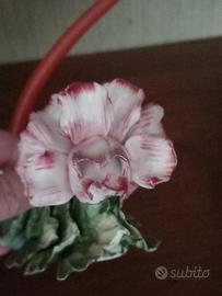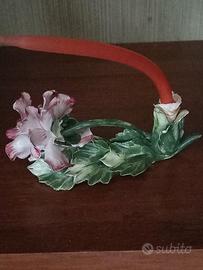 vendo portacandela in ceramica originale Capodimonte con motivo floreale, marchiato. candela originale leggermente rovinata