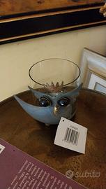 Portacandela Gufetto In Metallo e Vetro