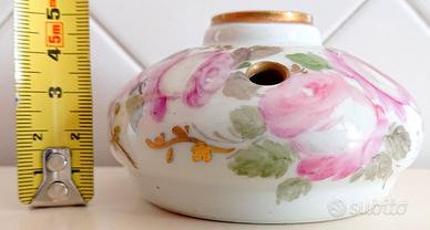 Portacandela Limoges, Francia / France - 1980 Con candela dorata Decorato a mano con tema floreale Diametro: circa 9 cm Altezza: circa 5 cm Peso portacandela + candela : 190 grammi Ritiro a Valenza (AL) oppure spedizione