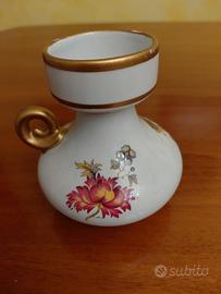 portacandele in porcellanadecorato con motivi floreali policromi e bordi dorati.