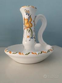 Portacandela in ceramica acquistato nel borgo di Moustiers-Sainte-Marie. Realizzato e dipinto a mano, porta con sé la storia della tradizione provenzale.
