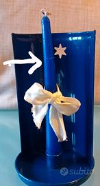 Portacandele BLU con candela in tinta e foro esterno a forma di STELLA dal quale trapassa la luce creando un particolare effetto ottico. la candela ha una fenditura - come da ultima foto - che non impedisce che possa stare dritta e fare luce. Non è mai stata accesa ed usata