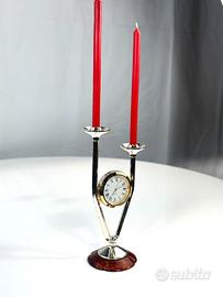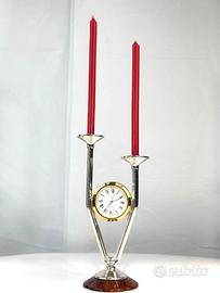 Portacandele con orologio vintage in metallo e leg