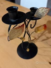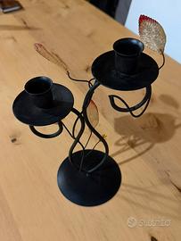 Elegante portacandele decorativo a 2 bracci, dal design moderno e armonioso. La struttura in metallo nero è impreziosita da elementi floreali decorativi con foglie translucide dai toni caldi ambra, che creano un piacevole effetto luminoso. Ideale come: – centrotavola raffinato – complemento d’arredo per soggiorno o sala da pranzo – atmosfera romantica e accogliente – idea regalo di gusto Dettagli: • Materiale: metallo + elementi decorativi in vetro/résina • Posti candela: 2 • Condizioni: ottime, nessun difetto • Stile: moderno / floreale Prezzo: 24 € Ritiro a mano o spedizione disponibile. Oggetto decorativo elegante, di forte impatto visivo. Se non hai trovato nulla che ti piace, dai un'occhiata ai miei altri annunci.