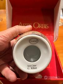 Portacandele votivo in porcellana finemente decorato in oro con il “Tree of Life” di Gustav Klimt. Un portacandele adatto a una tea light. Prodotto in Germania da Goebel negli anni ’90.