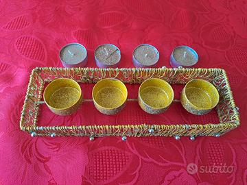 Portacandele in metallo glitterato Oro