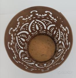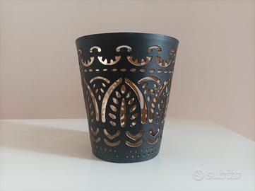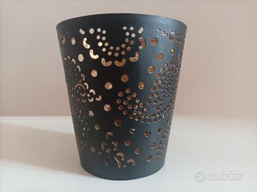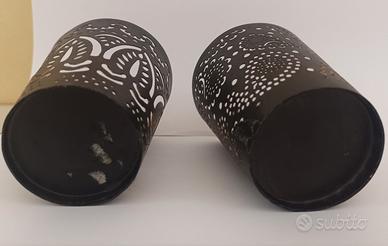 Vendo due portacandele in metallo, esterno nero e interno color oro.