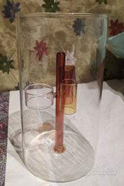 Portacandele in vetro ambra Ichendorf Milano, realizzato a mano. Appartiene alla collezione Iris. Nuovissimo, ancora con la scatola originale!