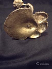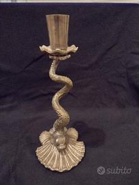 portacandele vintage in ottone raffigurante un delfino su conchiglia Altezza 20 cm