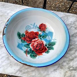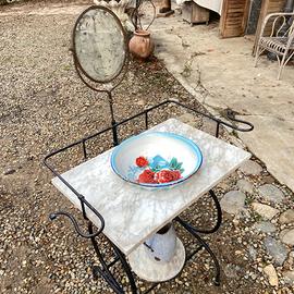 Antico porta catino primi 900 in ferro battuto completo di brocca e catino in metallo