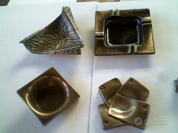 Vintage, ottimi presenti da regalo molto richiesti dagli anni '60 agli anni '90. Nati come posaceneri di pregio da salotto o studi professionali, oggi possono essere convertiti in porta bonbons o svuota-tasche, in casa o ufficio o studio professionale per tenere dei cioccolatini o caramelle per gli ospiti o clienti. In foto è rappresentato in marmo rosso di Levanto, in onice verde del Pakistan, in marmo rosa del Portogallo, in marmo rosso di Francia, in ceramica dipinta a mano ed in bronzo. A disposizione per una visione diretta o ulteriori informazioni. Se possibile, preferibile consegna a mano, ma potrei anche spedire.