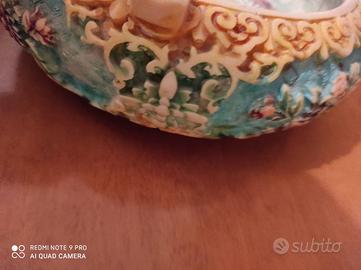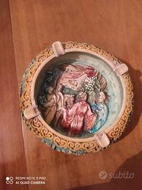 Splendido portacenere in ceramica con scena in rilievo dipinta a mano, dai colori intensi e dettagli raffinati. Un pezzo particolare che unisce funzionalità e valore decorativo, ideale come oggetto da collezione, arredo in stile vintage o regalo originale.