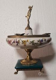 portacenere vintage in porcellana e metallo, misure altezza 23cm larghezza 15cm