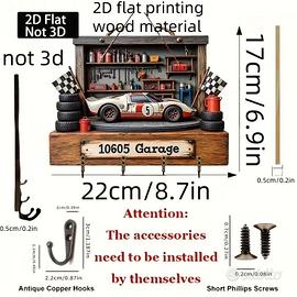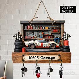 Portachiavi 2D da parete Gagage vintage tipo Gulf, con struttura in legno no £D