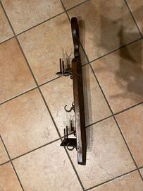 Portachiavi o appendino in legno con decorazione floreale dipinta a mano. - Motivo a nastro rosso e fiori. - Ganci in metallo.