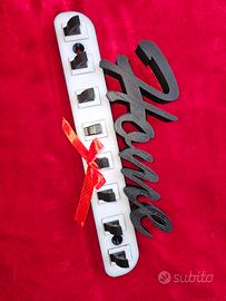 Portachiavi da muro con scritta home bianco e nero, con 8 appendini e 2 buchi per fissarlo al muro. Comodo e pratico Disponibilità di più quantità