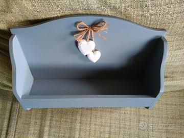Portachiavi da muro con vano portaoggetti. In legno. Grigio con cuori bianchi. Dimensioni 20x30 cm Profondità massima 8 cm