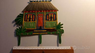 Un simpatico portachiavi da parete a forma di casa brasiliana, ideale per aggiungere un tocco di colore. Realizzato a mano. Mai Usato. Per utilizzarlo bisogna piegare le linguette che fungeranno da ganci per le chiavi.