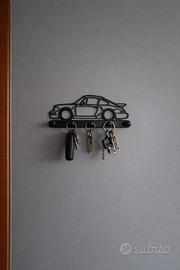 Vendo portachiavi da parete a forma di Porsche 911, realizzato con stampa 3D in PETG nero, materiale resistente e durevole.