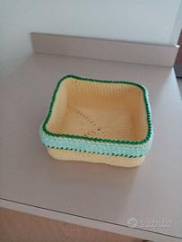 ESEGUO SU RICHIESTA, CON LAVORAZIONE AD UNCINETTO, PORTACHIAVI, SEGNALIBRI, CENTRI DI VARIE FORME E DIMENSIONI, PRESINE DA CUCINA A DOPPIO STRATO, COPERTE SINGOLE E MATRIMONIALI, COPERTINE PER NEONATI. MASSIMA ATTENZIONE NELL'ESECUZIONE DEI MANUFATTI.