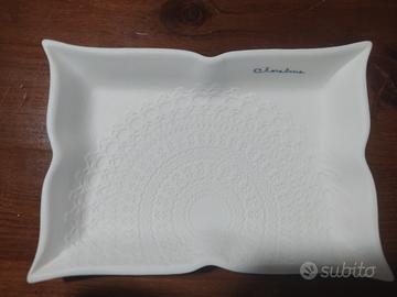 Nuova mai usata. In confezione originale: scatola in cartone con decorazioni floreali sul coperchio e all'interno il porta cioccolatini è appoggiato su raso bianco