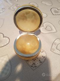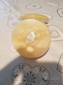 Portacipria in Alabastro di Volterra anni 50 con Decorazione Floreale in ottime condizioni con segni dell'uso sul bordo metallico