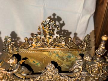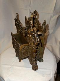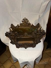 Questo oggetto è un portacorrispondenza d'epoca in bronzo fuso o ottone, caratterizzato da uno stile rococò o barocco molto elaborato.