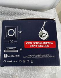 Vendo per errato acquisto PORTA FARETTO IN GESSO da Incasso quadrato 100 x 100 mm - 68 pezzi. Misura:100*100*30 mm - Misura Incasso spessore max: 103 mm - CONTENUTO DELLACONFEZIONE 1pz di faretto ingesso 1pz di ghierabloccante per il faretto 1pz diportalampada GU10 in ceramica Ogni confezione contiene2 pezzi