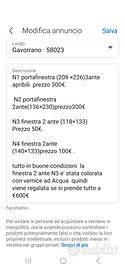 portafinestra 2ante e due finestre tutto in buone condizioni sono in legno colore noce scuro la finestra più piccola e stata.colorata con jeans tempera ad acqua per questo il prezzo e basso