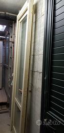 Portafinestra completa (telaio, anta e persiana); anta in legno di colore bianco avorio e persiana in alluminio anodizzato di colore verde. Dimensioni 240x78