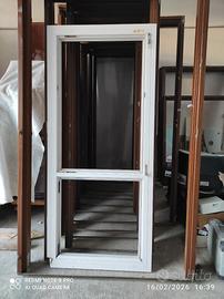 Vendo portafinestra in PVC. Si apre solo la parte superiore. La parte inferiore ha il vetro fisso. Misure foro telaio esterno: L 0,86 x H 2,08.