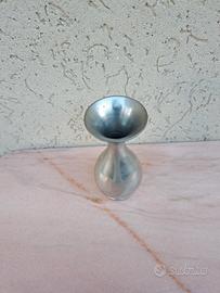 Vendo portafiori in peltro, visibile sul fondo dell'oggetto nell'ultima foto. Oggetto in peltro 95% lavorato a mano. Il portafiori ha una altezza di circa 13 cm e un diametro alla base di circa 6 cm. L'oggetto presenta una leggera ammaccatura, visibile e comunque valutabile dalle foto. Ottimo oggetto da collezione e anche da inserire per un arredo dal design ricercato.