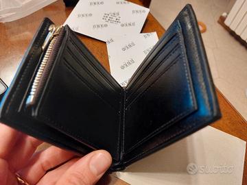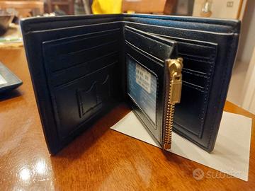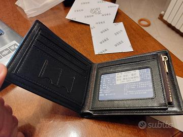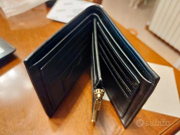 Bellissimo portafoglio corto da uomo . Portafoglio a tre ante con cerniera nell'anta centrale , con portamonete e con slot per carte multiple