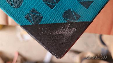 -Tessuto verde petrolio interno nero con righe lucide diagonali.