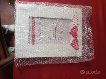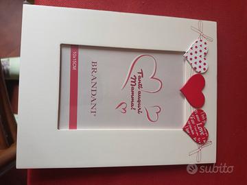 Portafoto in legno, marca Brandani10×15cm bianco e rosso con cuori in rilievo dello stesso colore!Mai usato come si vede dalla Foto,ancora nella sua plastica e scatola originale!Idea anche per San Valentino!